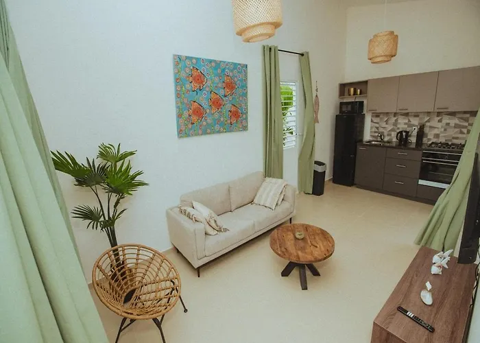De 1-slaapkamer Tropical Bliss Villa Willemstad ligt op circa 4 km van de Jan Thiel zoutpannen en nodigt gasten uit om te genieten van een terras.